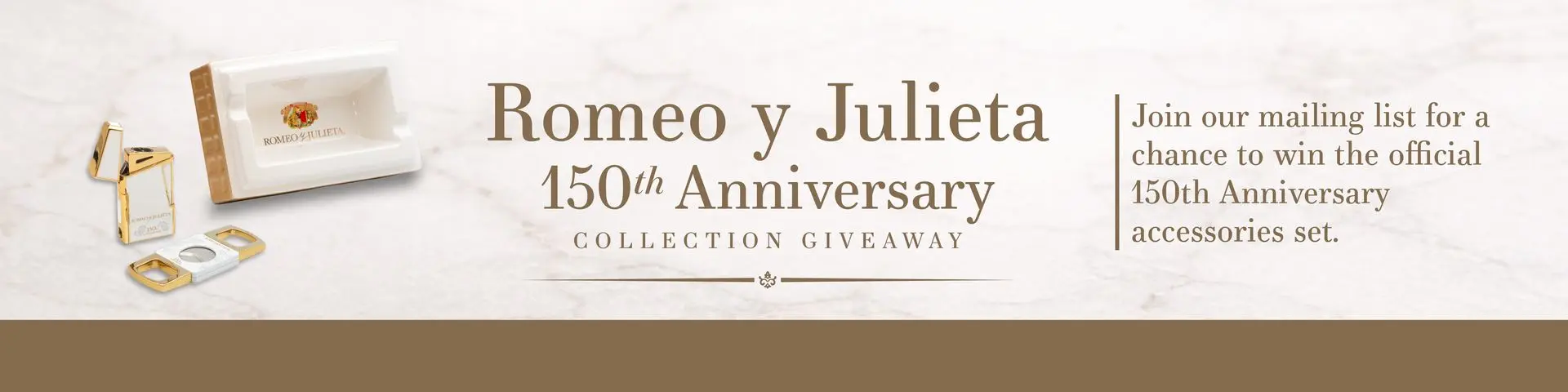 NO PURCHASE NECESSARY. Open to legal residents of the United States who are 21 years of age or older. Promotion period: 12:00 a.m. ET Feb 1, 2026 to 11:59 p.m. ET Mar 1, 2026. How to enter: subscribe to the Cigar Circus newsletter on this page during the promotion period and confirm you’re 21+. Limit one (1) entry per person/email. Prize: one (1) Romeo y Julieta 150th Anniversary Accessories Set (ARV: $XX). Winner selection: random drawing from eligible entries by 5:00 p.m. ET on Mar 2, 2026; odds depend on number of entries received. Notification/claim: winner notified by email and must respond within 7 days or forfeit; an alternate may be selected. Restrictions: prize is non-transferable; no cash substitute; Sponsor may substitute a prize of equal or greater value if unavailable. Eligibility exclusions: employees/contractors and immediate family/household members of Cigar Circus (United Tampa Tobacco Wholesale) and affiliates are not eligible. Void where prohibited. By entering, you agree to the Official Rules and to receive marketing emails from Cigar Circus (unsubscribe anytime). Information collected is used per our Privacy Policy. Disclaimer: This promotion is not sponsored, endorsed, or administered by Romeo y Julieta, Altadis U.S.A., or any social media platform. Sponsor: Cigar Circus, United Tampa Tobacco Wholesale, Clearwater, FL; CigarCircus.com. Governing law: Florida.