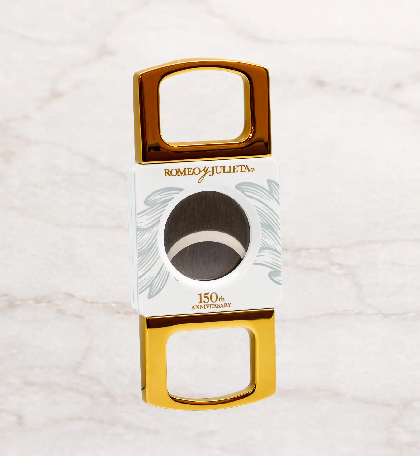 Dual-blade precision for clean, consistent cuts — finished in the official Romeo y Julieta 150th Anniversary design.